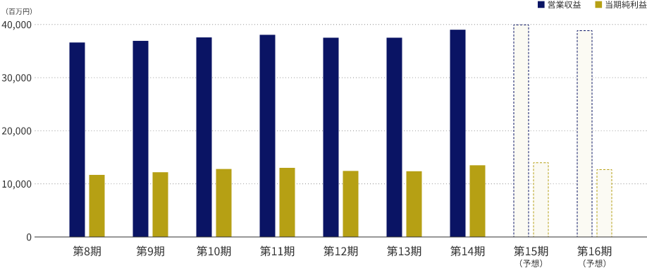 その結果、第14期末時点で本投資法⼈が保有するポートフォリオは、300物件、1兆917億円となり、第14期の業績は、営業収益39,022百万円、営業利益15,584百万円、当期純利益13,499百万円となりました。