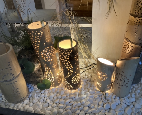 ホテルを地域文化や人々とつなぐ場として活用する取組みを進めています。その一例が、バンブーランプアーティスト・OITA氏とのコラボレーションです。支配人が作品に感銘を受けたことをきっかけに、自然素材の竹と光が織りなす温かさに共感し、今回の企画が実現しました。