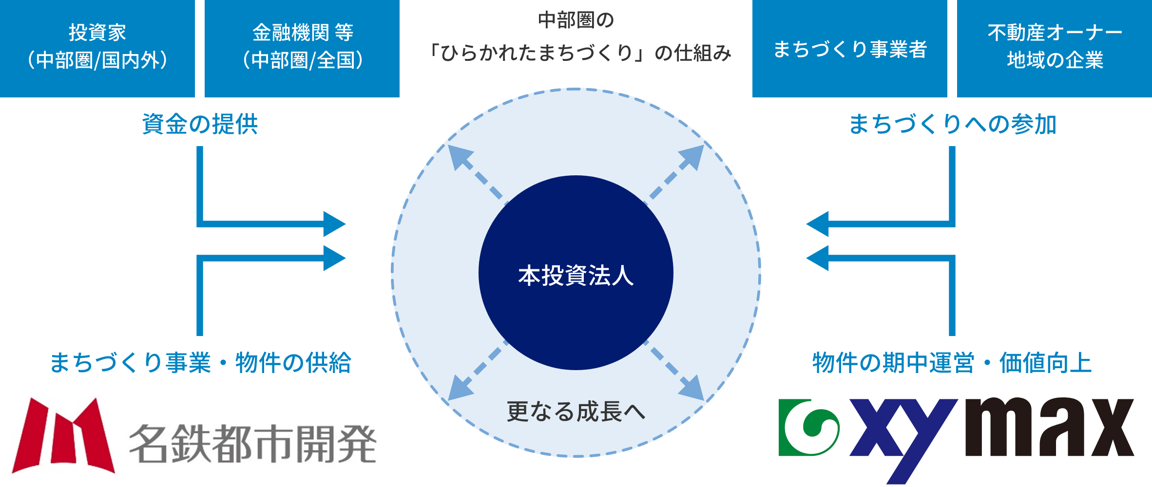- 個々の企業の枠を超えてまちづくり事業を加速