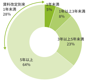 3年未満で期間満了及び賃料改定となる契約が約40%