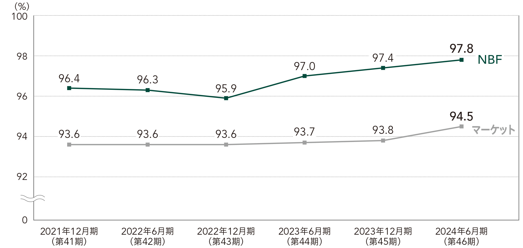 マーケット稼働率を上回り、NBFの期中平均稼働率は97.8%に改善