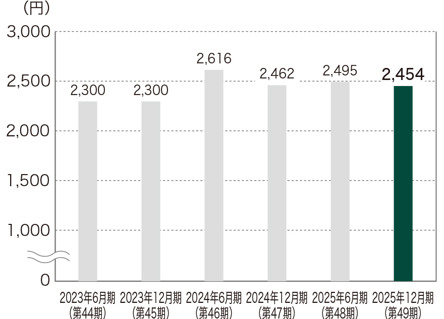 上場以来、49期(24年)にわたり継続して安定的な分配を実現