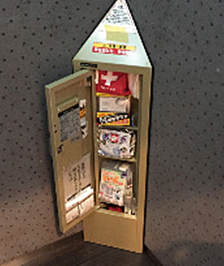 非常時発電やエレベーター内防災キャビネット、災害時救援自動販売機などを設置