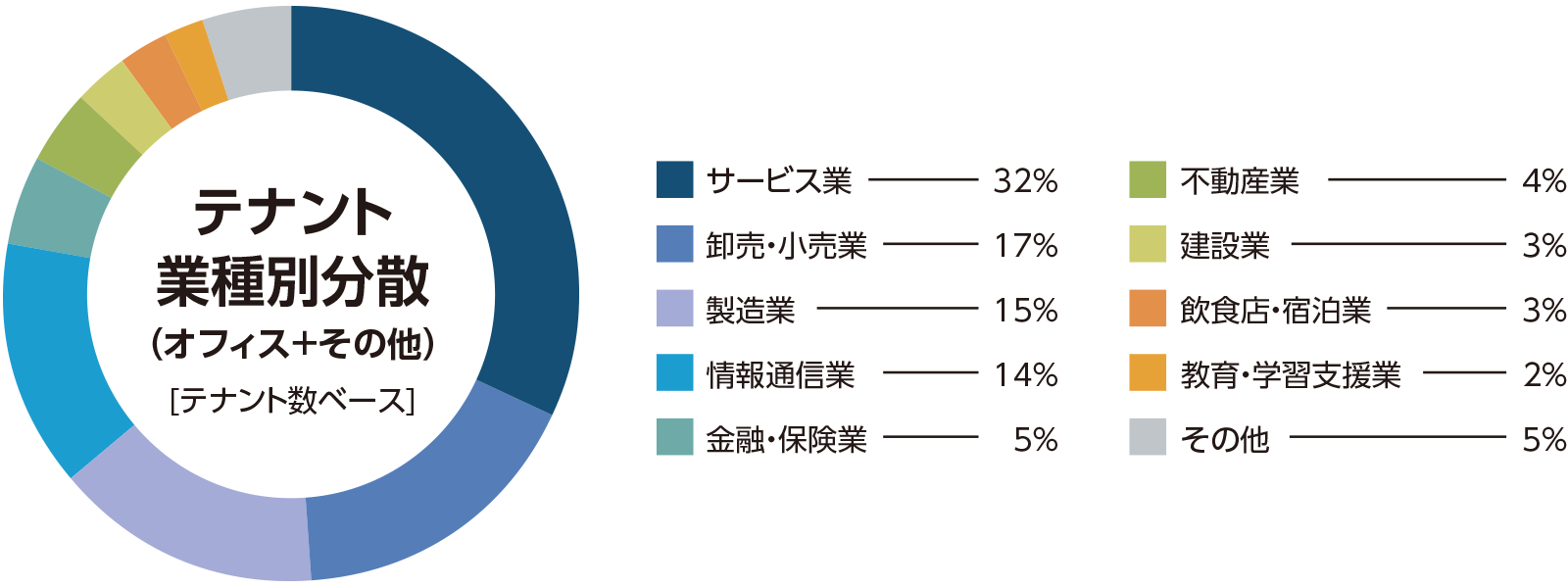 テナント業種別分散(オフィス+その他)(テナント数ベース)