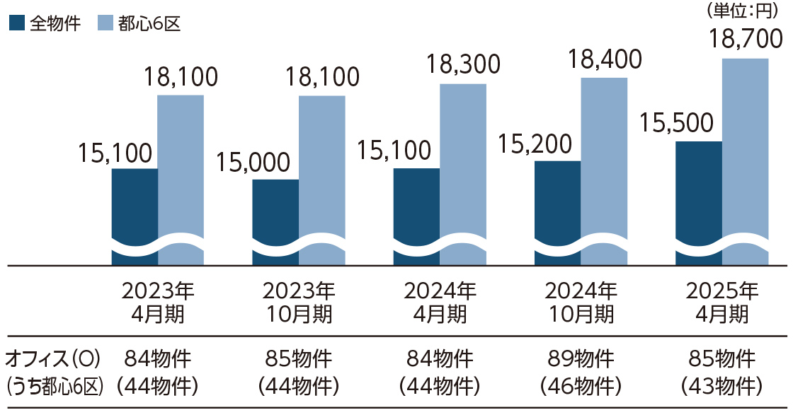 - 心築により、都心6区および全物件の賃料単価が大きく上昇