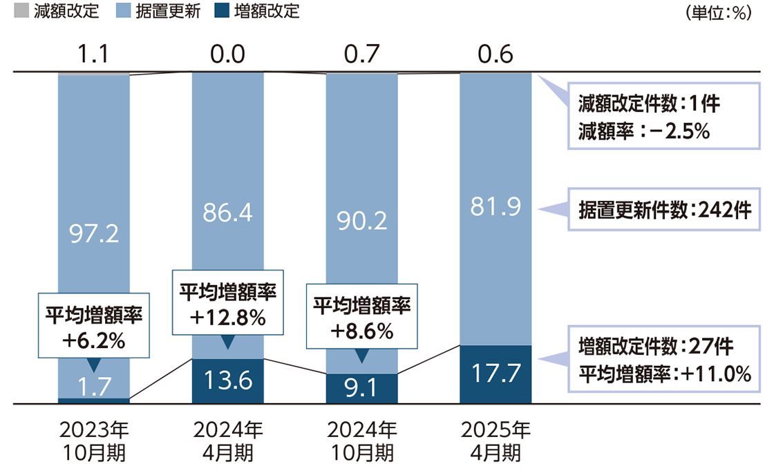 賃料改定時の内訳割合の推移(オフィス、賃貸面積ベース)