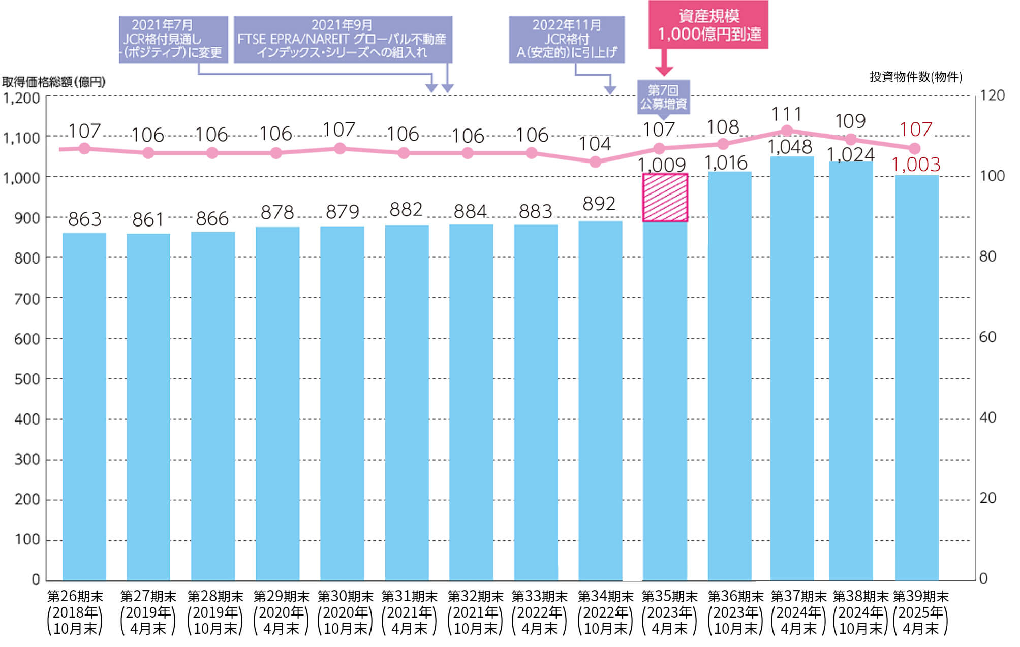 第26期末(2018年10月末)〜第39期末(2025年4月末)