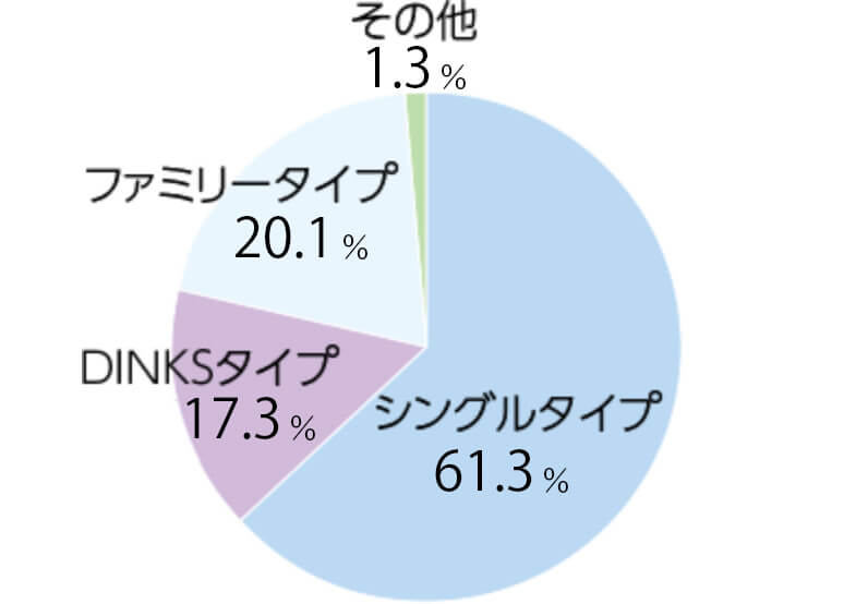 - (注2)「面積比率」は、総賃貸可能面積の合計に対する各住戸タイプ別面積の比率を記載しており、小数第2位を四捨五入しています。