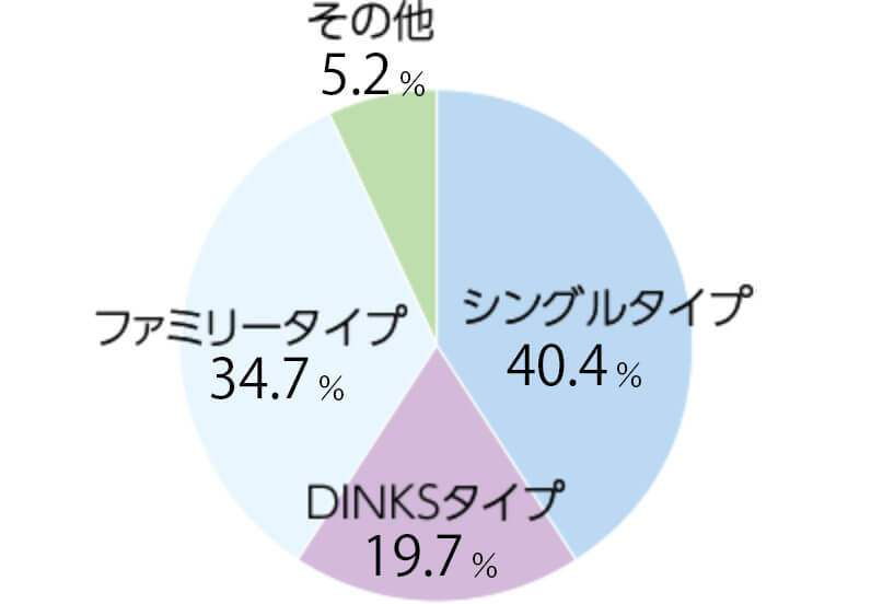 - (注1)「住戸比率」は、住戸の総数に対する住戸タイプ別の各住戸の比率を記載しており、小数第2位を四捨五入しています。