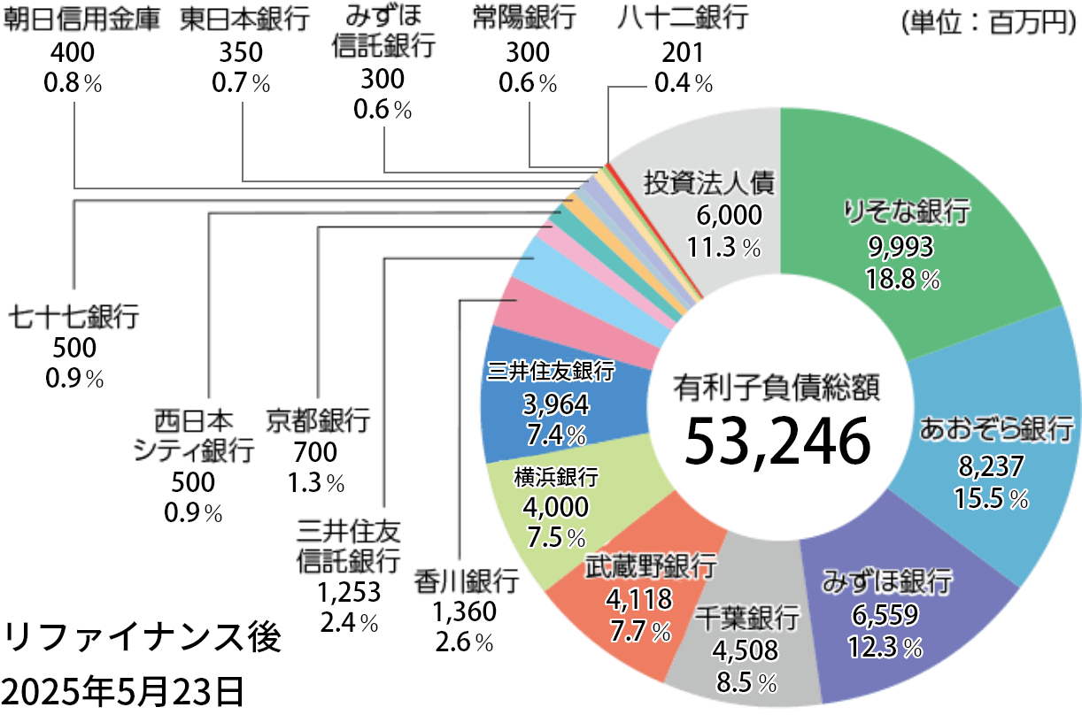 決算後の2025年5月23日に返済期限を迎えたタームローン2N(借入金残高3,049百万円)の返済に充当するため、新たなタームローンの借入を行いました。