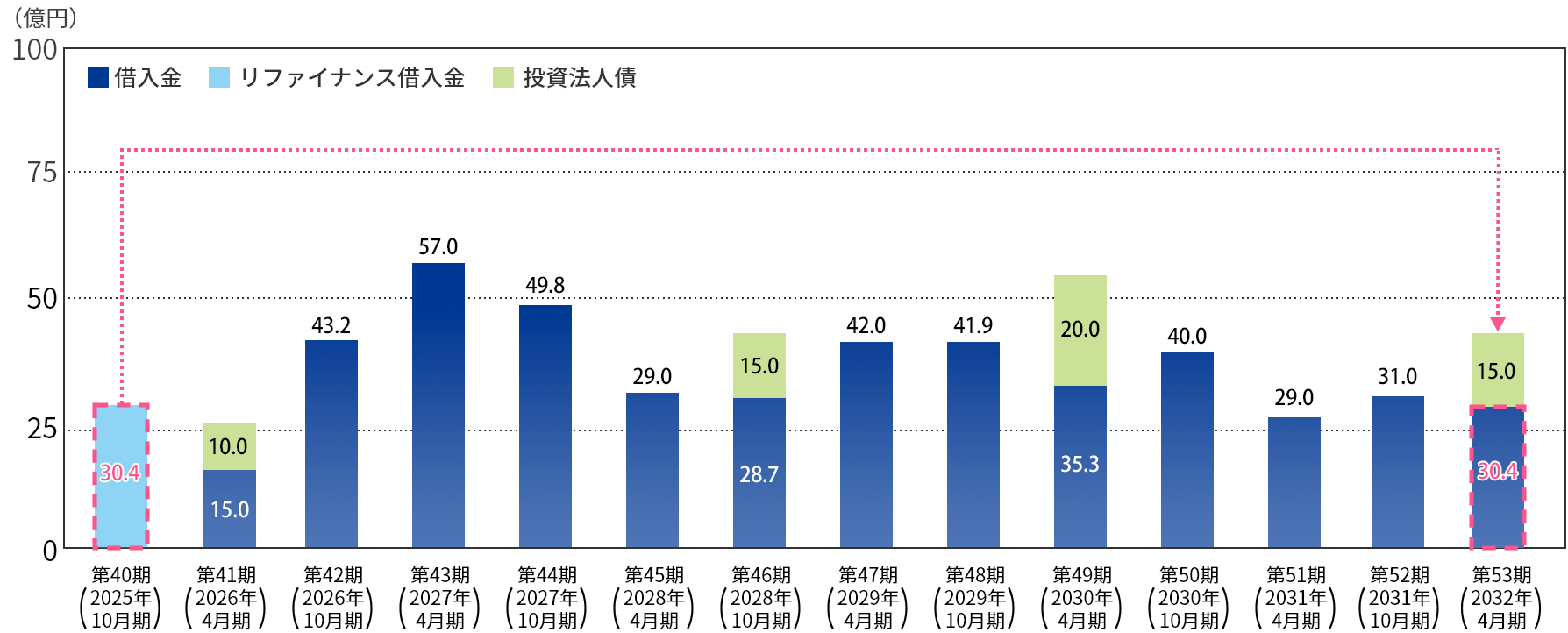 リファイナンスリスクの軽減を図るため、返済期限の分散化に努めています。