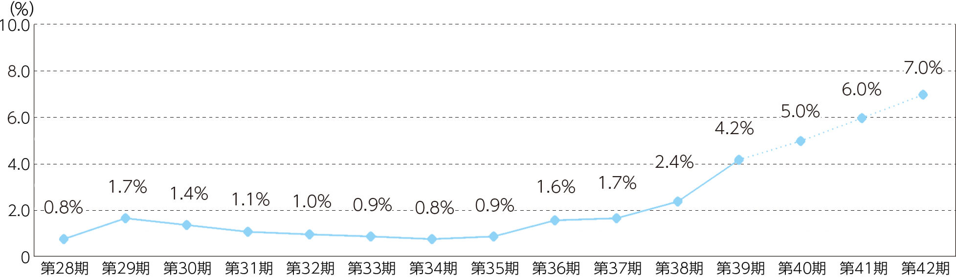更新時賃料変動率(点線は目標値)
