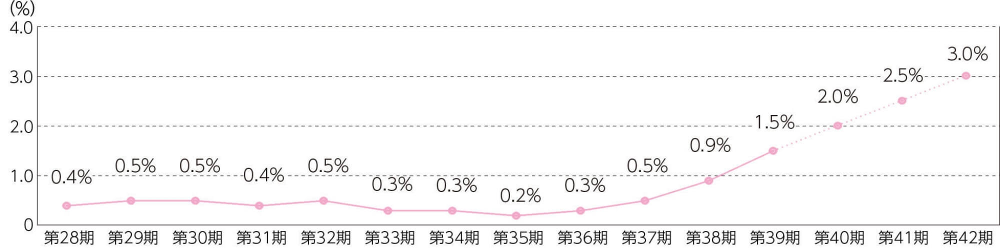 新規契約時賃料変動率(点線は目標値)