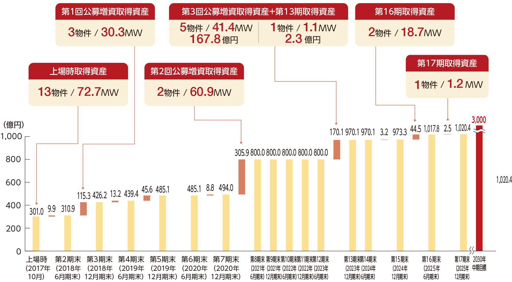 本投資法人は、カナディアン・ソーラー・グループが知見を有する太陽光発電設備を中心に、ポートフォリオの分散を図りつつ、資産規模3,000億円を新たに中期目標として掲げ、投資主価値向上に向け、引き続き成長を目指してまいります。