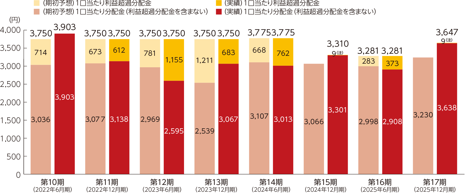 (注)第15期及び第17期に計上した利益超過分配金については、複数発電所の工事費用に係る償却期間に関する税務、会計計上の不一致に起因するものです。