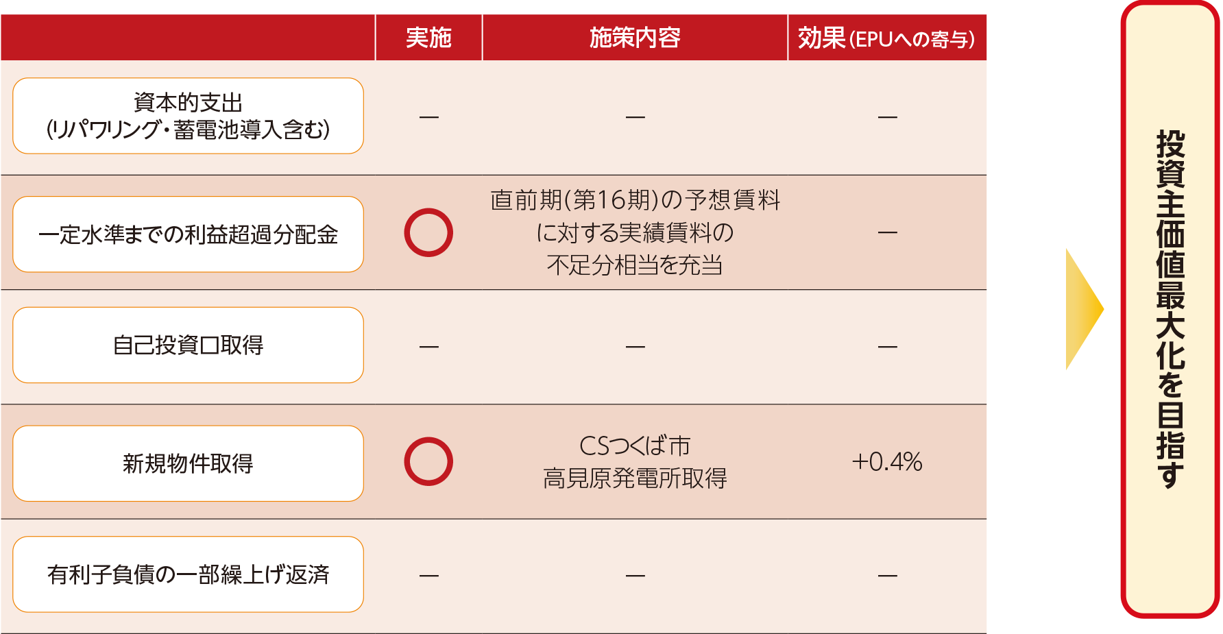 キャッシュフローマネジメント方針の見直しに基づき、第17期に以下の施策を実施しました。