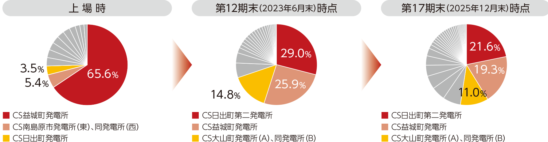 (注) 「評価価格」とは、物件番号がS-01からS-18までの発電所については、PwCサステナビリティ合同会社が算定した2025年12月末時点の再生可能エネルギー発電設備の評価額(不動産、不動産の賃借権又は地上権の評価額を含みます。以下同じです。)の上限額及び下限額から、本投資法人が投資法人規約第41条第1項に従い算出した中間値を、S-19からS-30の発電所の再生可能エネルギー発電設備の評価額については、クロール株式会社が中央値として算定した2025年12月末時点の評価額を、S-31からS-35の再生可能エネルギー発電設備の評価額については、一般財団法人日本不動産研究所が算定した2025年12月末時点の評価額の上限額及び下限額から、本投資法人が投資法人規約第41条第1項に従い算出した中間値を記載しています。