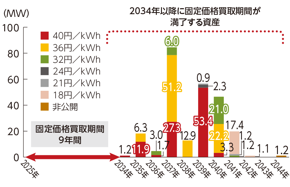 固定価格買取期間の残存期間(パネル出力ベース)